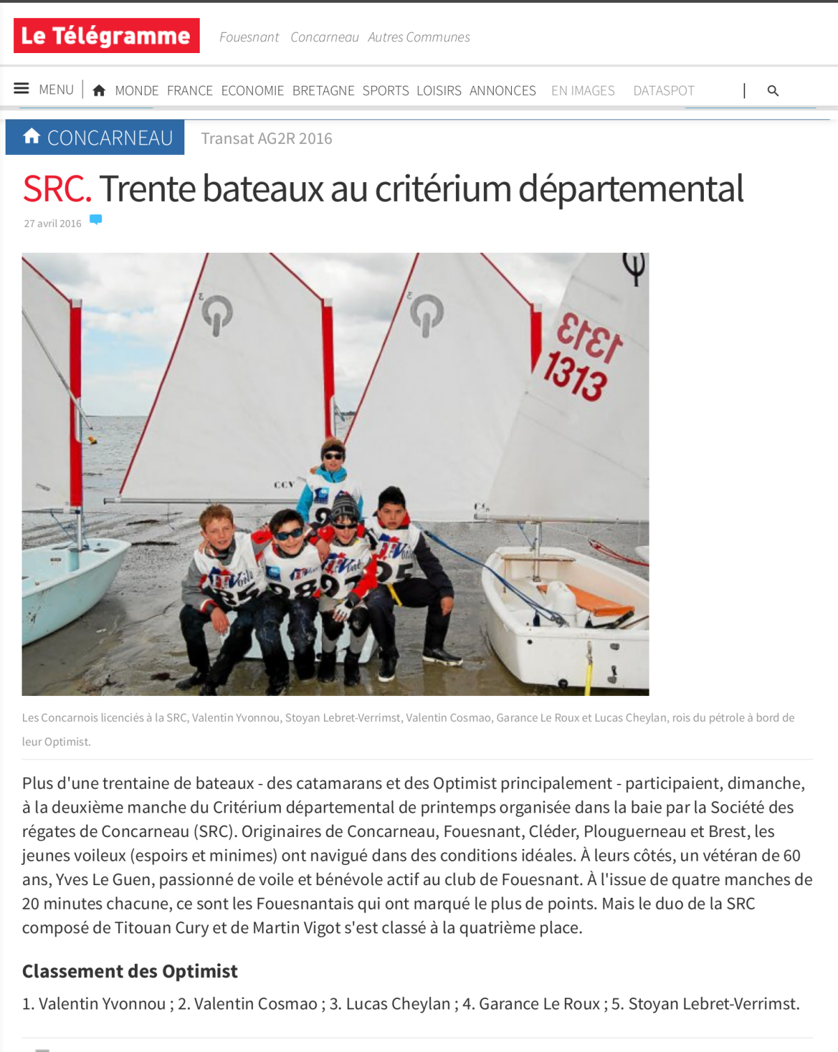 Sur des bateaux mis à leur disposition par VSPC (catamarans, Optimist, Planches) les jeunes voileux participent toute l'année au Critérium départemental du Finistère organisé en Cornouaille par la Société des régates de Concarneau (SRC), les Centres Nautiques de Fouesnant Cornouaille, de l'Ile Tudy ou de Douarnenez .